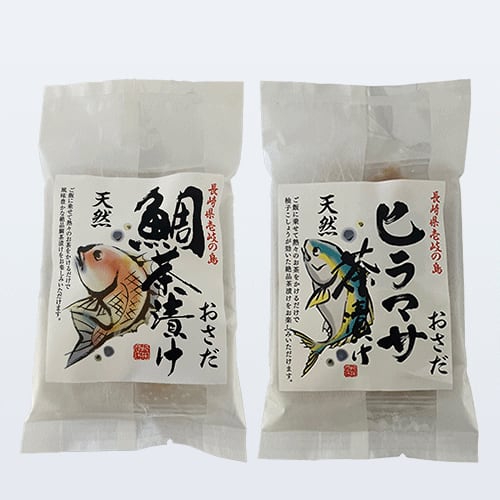-鯛茶漬け・ひらまさ茶漬け:壱岐近海で獲れた天然魚の旨味が味わえる人気の商品。